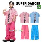 キッズダンス衣装 ヒップホップ 衣装 ピンク ブルー ストライプ柄 シャツ パンツ ダンス衣装 キッズ セットアップ 男の子 ガールズ 派手 K-POP 韓国