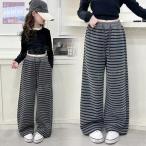 ワイドパンツ ボーダー柄パンツ 子供服 子ども服 こども服 女の子 キッズ スウェット ジュニア スポーツウェア ゆったりズボン KTGA116(100-170)