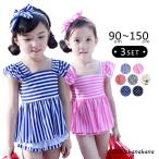 キッズ 水着 女の子 セパレート 子供 ジュニア 3点セット ビキニ トップス フリル レース付きパンツ ヘアバンド リボン付き ボーダー柄 かわいい
