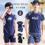 水着 男の子 上下セット 2点セット キッズ スイムウェア 半袖 ショートパンツ 迷彩柄 カモフラージュ柄 ジュニア 男児 子供 幼稚園 海 水泳 春新作