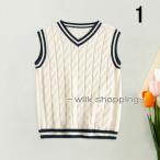 ベスト ニット 子供 キッズ ジュニア 男の子 女の子 男女兼用 トップス Vネック チルデンニット ケーブル編 無地 ライン ノースリーブ 学生風