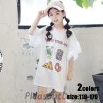 Tシャツ トップス ワンピース 韓国子供服 ロング丈 コットン 夏 女の子 プリント 五分袖 丸襟 おしゃれ 子ども服 ゆったり カジュアル 可愛い ジュニア服 入学式