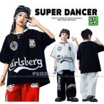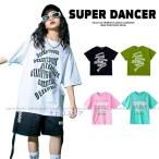 キッズダンス衣装 Tシャツ トップス ヒップホップ 衣装 K-POP 韓国 半袖 デカロゴTシャツ 黒 白 赤 緑 黄色 青 水色 グレー オレンジ ピンク
