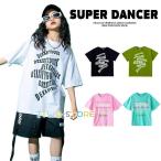 キッズダンス衣装 Tシャツ トップス ヒップホップ 衣装 ダンス衣装 キッズ HIPHOP ファッション K-POP 韓国 白 黒 カーキ ピンク 緑
