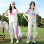 ジャージ 子供服 半袖 Tシャツ 重ね着 セットアップ キッズ カジュアル 女の子 パンツセット ウエストゴム スポーツウェア ジュニア 夏薄手