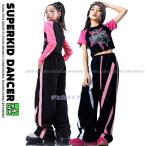 キッズダンス衣装 セットアップ ガールズ ヒップホップ 衣装 K-POP 韓国 子供ダンス服 派手 へそ出し トップス パンツ スカート 黒 ピンク