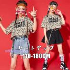 キッズダンス衣装 ヒップホップ 子供服 ヒョウ柄 へそ出し シャツ 半袖 ダンスパンツ スカート 女の子 スカート ストリート系 ジュニア 競技 ジャズダンス