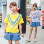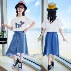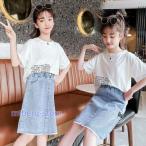 子供服 セットアップ 夏 韓国子供服 女の子 ジュニア キッズ 上下セット Tシャツ 半袖 スカート 膝丈 可愛い おしゃれ 通学着 通園着