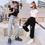 キッズダンス衣装 Tシャツ トップス ヒップホップ ダンス衣装 ファッション 半袖 K-POP 韓国 黒 白