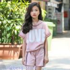 子供服 セットアップ 女の子 韓国子供服 キッズ ジュニア 春夏 上下セット 2点セット 半袖 Tシャツ 綿 ショートパンツ 薄手 可愛い おしゃれ 通学着 新品