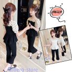 子供服 セットアップ 夏 韓国子供服 女の子 ジュニア キッズ 上下セット 無地 Tシャツ 半袖 ガウチョパンツ ドット柄 可愛い おしゃれ 通学着 通園着