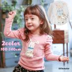 カットソー Tシャツ 長袖 キッズ ジュニア 子供 女の子 プリント イラスト うさぎ ウサギ アップリケ リボン ギャザー 立体 かわいい おしゃれ