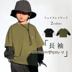 子供 フェイクレイヤード 長袖Tシャツ オーバーサイズ 男の子 カットソー クルーネック Tシャツ ゆったり 男児 トップス 長袖 春秋 プリントTシャツ