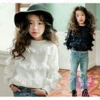 半袖Tシャツ 女の子 半袖トップス 無地 肩フリル 春 夏 プルオーバー キッズ 子ども服 韓国子供服 ジュニア 子供服 ダンス