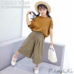 子供服 セットアップ キッズ 女の子 夏 2点セット 上下セット Tシャツ ブラウス 半袖 ガウチョパンツ シフォン 無地 ジュニア おしゃれ 可愛い カジュアル 新品