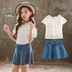 子供服 セットアップ キッズ 女の子 春夏 半袖 2点セット 上下セット Tシャツ デニムパンツ ショートパンツ ジュニア おしゃれ カジュアル 可愛い 新作 150 160