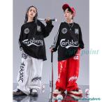 ヒップホップ 衣装 キッズダンス衣装 セットアップ 韓国 子供ダンス服 派手 白 黒 赤 K-POP hiphop 長袖Tシャツ スウェットパンツ