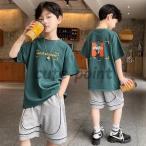 男児 半袖Tシャツ ゆったり 半ズボン キッズ 上下セット 男の子 2点 ストリート風 Tシャツ 子供 ハーフパンツ 快適 おしゃれ 夏 ジュニア服