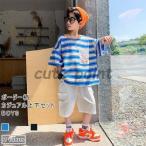 キッズ Tシャツ ボーダー柄 男の子 半袖Tシャツ ゆったり 半ズボン 男児 上下セット 2点 ジュニア ボーダー柄Tシャツ 夏 ハーフパンツ 子供