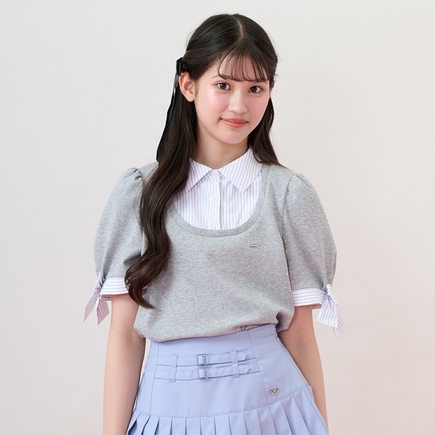 メゾピアノジュニア(mezzo piano junior)袖リボン布帛ドッキングTシャツ