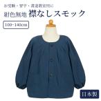 襟なし紺色スモック 日本製 100〜140cm