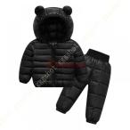 冬のベビースノースーツジャケットフードダウンスノージャケット+スキービブパンツ ダウンコート2ピース男の子女の子1-3歳の赤ちゃん服衣装セット 赤