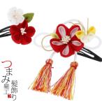 (Prices down2)七五三 髪飾り 3歳 2点セット「赤色のつまみのお花と蝶、白色の紐、房飾り」子供 つまみ細工 3歳 5歳 7歳 (1778)ss2509wkk25