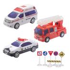 ミニサウンド 緊急車両セット 3台セット フリクション走行 パトライト パトカー 救急車 消防車 標識セット付 トイザらス限定 3歳 4歳 5歳