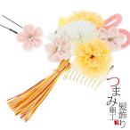(Prices down2)七五三 髪飾り2点セット「薄黄色のお花、薄ピンク、白色のつまみのお花、房飾り」子供 つまみ細工 3歳 5歳 7歳 (1680)<H>ss2509wkk25