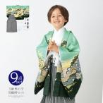 七五三 着物 男の子 5歳 羽織袴セット「若葉色 鷹に松」フルセット 5歳向け 5才 五歳 男児用 着物セット 子供着物 五才のお祝い着(メール便不可)