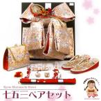 七五三着物7歳用 筥迫セット ハコセコセット ベージュピンク 桜有職文様 草履バッグ6点セット 日本製