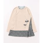 チュニック リボン×チェック スカラップ切り替え 長袖チュニック キッズ 子供服
