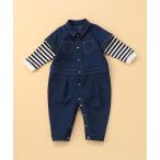 ベビー服 ロンパース デニムライクストレッチ つなぎ風フェイクレイヤード ツーウェイオール