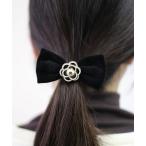 ヘアゴム ベルべ お花 ブラック リボン ヘアゴム