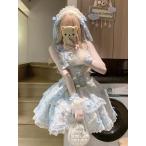 ロリータワンピース lolitaドレス 洋服 4点セット(ワンピース+ネックアクセサリー+アームカバー+ヘアクリップ)
