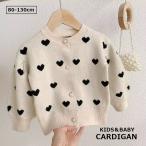 カーディガン ニット キッズ ベビー 女の子 子供 トップス アウター 長袖 丸首 リブ ボタン ハート柄 暖かい 防寒 かわいい おしゃれ 襟なし