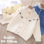 カーディガン 長袖 キッズ ベビー 子供 女の子 ニット ラウンドネック 花 フラワー 刺繍 ボタン ポンポン 重ね着風 可愛い おしゃれ お出かけ