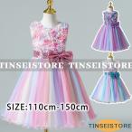 【特価】虹色子供ドレス ピアノ 発表会 キッズドレス 110-150CM フォーマル パーティードレス 花柄 ベビードレス スバンコール リボンドレス