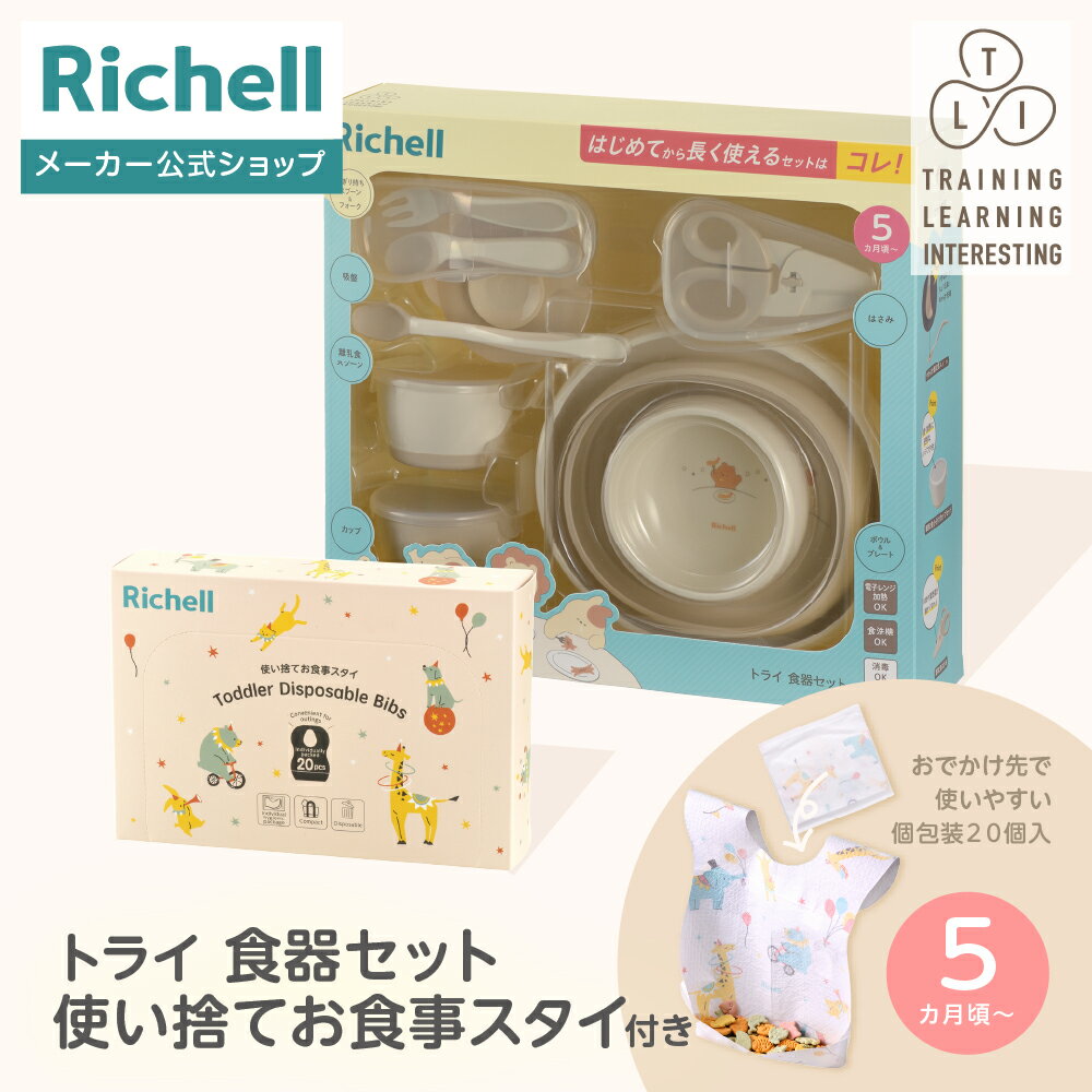 【LINE登録15%OFFクーポン 25日0時〜】【公式直営】トライ 食器セット 使い捨てお食事スタイ付きリッチェル ベビー 食器 セット 限定セット 使い捨て スタイ 出産祝い ギフト プレート ボウル カトラリー 赤ちゃん プラスチック