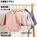お食事エプロン 長袖スモック ベビー キッズ 赤ちゃん 子供 防水 よだれかけ スタイ ビブ 食べこぼしキャッチ ポケット 無地 シンプル