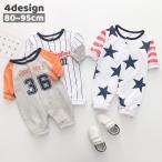 カバーオールロンパース赤ちゃんベビーつなぎ男の子長ズボン長袖ストライプ柄前ボタン星スター野球風ロゴかわいいお洒落