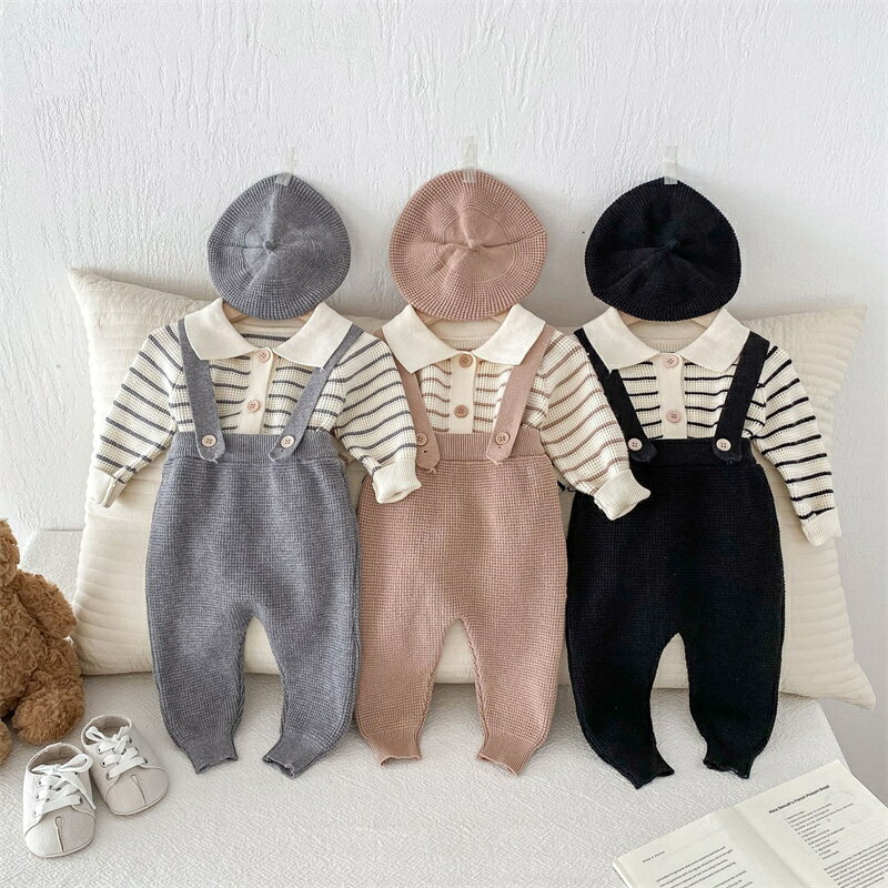 送料無料 ニット セットアップ ベビー服 2点セット 長袖カーディガン サロペット ズボン ストライプ 春秋 赤ちゃん 英倫 紳士服 子供服 ベビーウェア 暖かい ベビー用セーター スーツセット 女の子 男の子 新生児 出産お祝い 通気性 百日祝い お宮参り 66~90 楽天海外通販