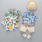 子供服 セット 上下セット セットアップ プリント ストライプ シャツ Tシャツ ズボン ジャージ キッズ ベビー服 男の子 女の子 半袖 夏 男児 おしゃれ 通学着