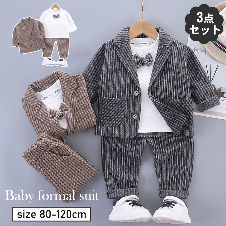 子供服 フォーマルスーツ 男の子 スーツ キッズ 3点セット ストライプ柄 長ズボン 紳士服 フォーマル 上下セット ベビー ベビー服 赤ちゃん 保育園 幼稚園 子ども 初節句 出産祝い 小学生 入学式 卒業式 七五三 結婚式 発表会 おしゃれ 子供服