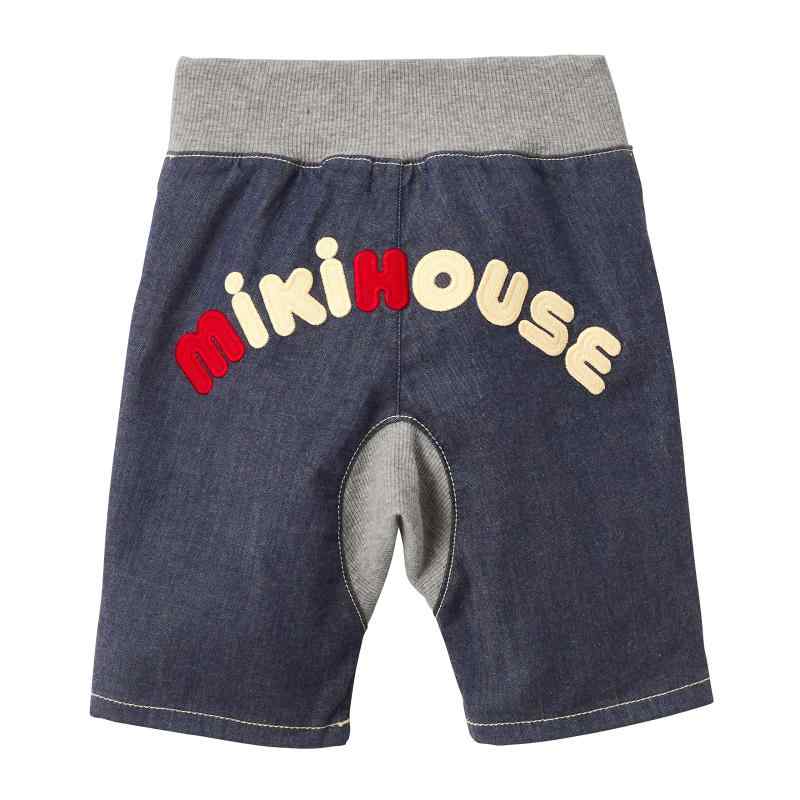 ミキハウス パンツ 7分丈 ズボン ロゴ デニム ストライプ ストレッチ 男の子 女の子 日本製 ベビー キッズ 子供服 10-3202-4