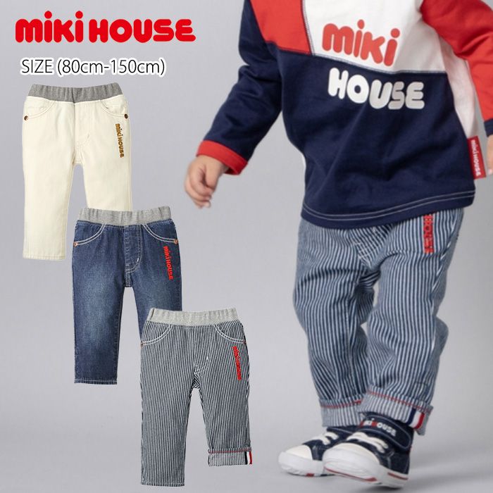 ミキハウス mikihouse 縦ロゴデニムパンツ (80cm-150cm) ボトムス パンツ ズボン デニム ロゴ ゴムウエスト 無地 ストライプ 通園 通学 子供 子供服 キッズ 赤ちゃん ベビー ジュニア 男の子 女の子 【10-3205-490】