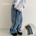 キッズ ベビー 女の子 男の子 デニム パンツ side line wide denim サイド ライン ワイドパンツ ワイドデニム ストレートデニム ボトムス ズボン コットン