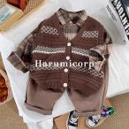 セットアップ キッズ ベビー服 3点セット男の子 女の子チェック柄 シャツ春秋冬 長袖 ズボン 子供服メリヤスベスト+tシャツ パンツ ジュニア 赤ちゃん おしゃ