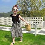 キッズ セットアップ 女の子 子供服 夏服 tシャツ 蝶結び ガウチョパンツ トップス ズボン チェック柄 おしゃれ 可愛い 韓国こども服 ベビー服 通学 通園 入学