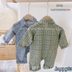 ベビー服 ロンパース 赤ちゃん 新生児 男女兼用 チェック柄 長袖 長ズボン ラペル 春服 可愛い 男の子 女の子 ジャンプスーツ カバーオール 66 73 80 90 100